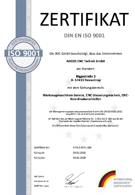 Die ADCOS CNC-Technik GmbH ist ein Lohnfertiger mit Sitz im nordrheinwestfälischen Kreis Olpe und ist auf das Präzisionsschleifen in den Bereichen der Medizin-, Kunststoff-, Stanz- und Umformtechnik sowie den Maschinenbau und die Verpackungsmittelindustrie spezialisiert. Außerdem sind weitere individuelle Oberflächenbearbeitungen umsetzbar. Somit besteht die Möglichkeit Unternehmen von der Einzelteilfertigung bis hin zur Serienproduktion zu begleiten.